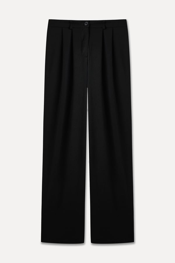 WIDE LEG PİLELİ PANTOLON SİYAH