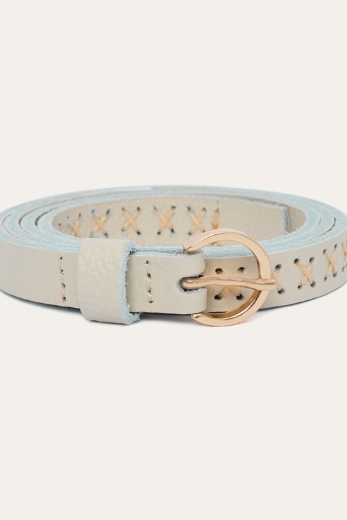 DİKİŞ DETAYLI HAKİKİ DERİ KEMER EKRU