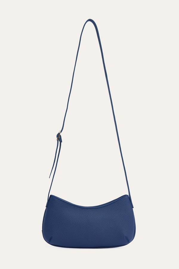 DERİ GÖRÜNÜMLÜ OVAL OMUZ ÇANTASI LACİVERT