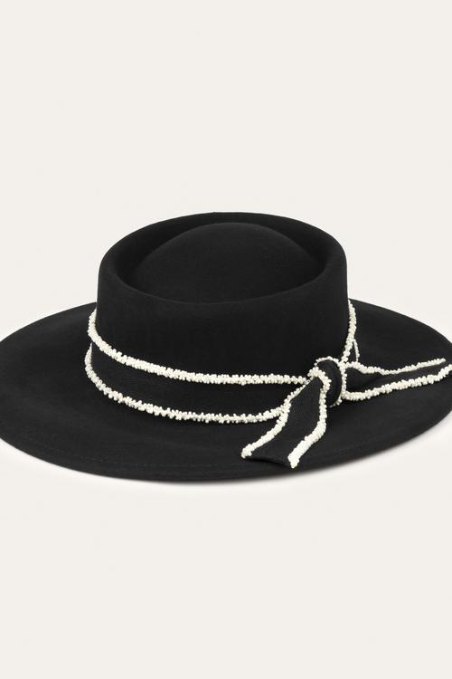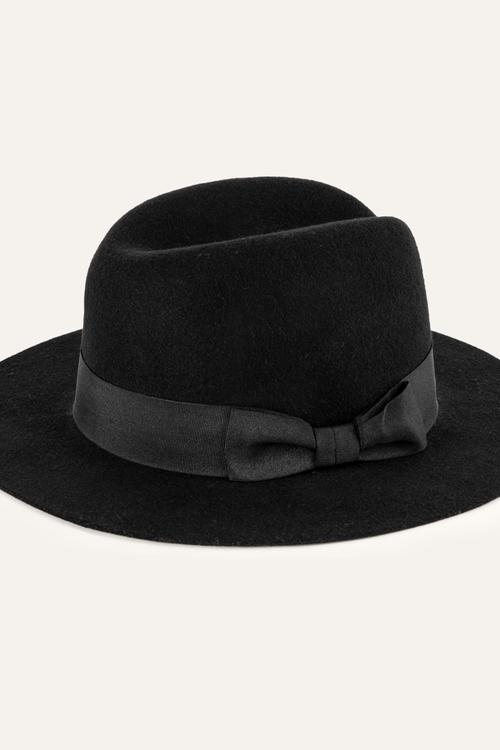 FİYONK DETAYLI FÖTR YÜN ŞAPKA SİYAH