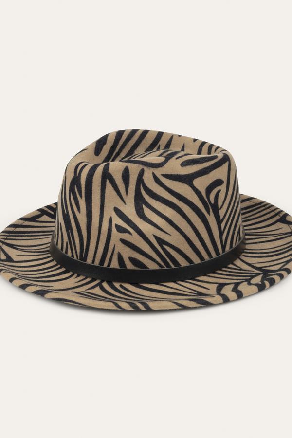ZEBRA DESENLİ FÖTR YÜN ŞAPKA CAMEL