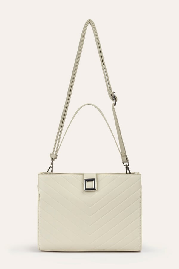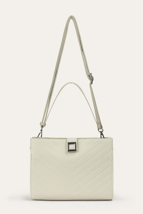 DERİ GÖRÜNÜMLÜ TOKALI EL ÇANTASI EKRU