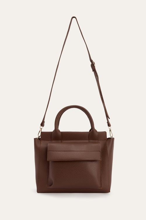 DERİ GÖRÜNÜMLÜ OMUZ ÇANTASI TABA