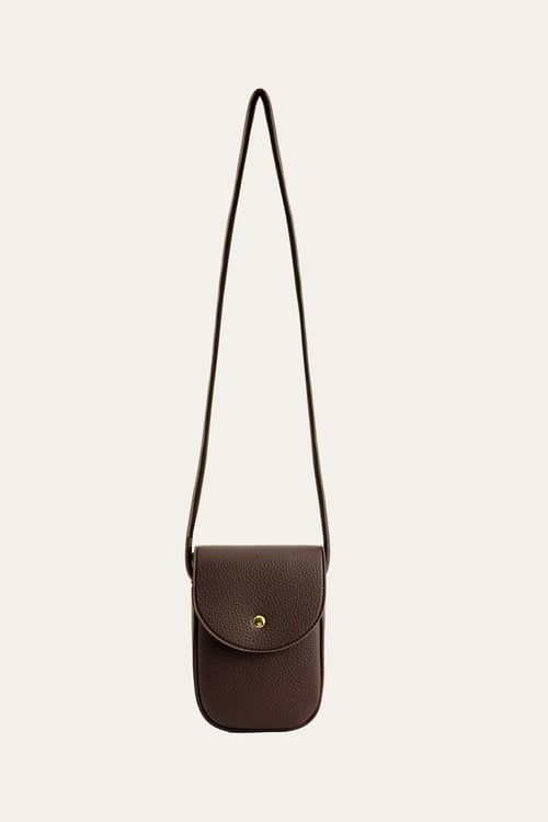 DERİ GÖRÜNÜMLÜ TELEFON ÇANTASI KAHVERENGİ