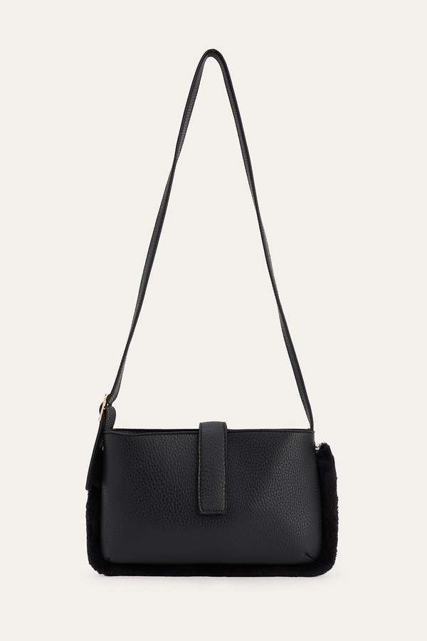 PELÜŞ DETAYLI OMUZ ÇANTASI SİYAH