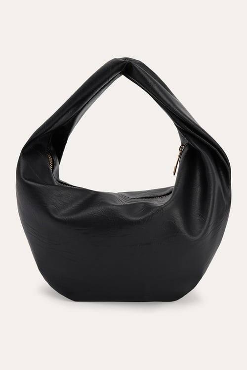KIRIŞIK DERİ GÖRÜNÜMLÜ EL ÇANTASI SİYAH