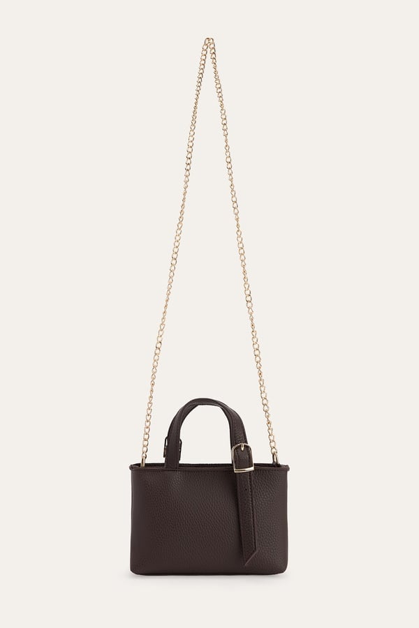 DERİ GÖRÜNÜMLÜ OMUZ ÇANTASI KAHVERENGİ
