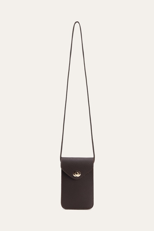 DERİ GÖRÜNÜMLÜ TELEFON ÇANTASI KAHVERENGİ