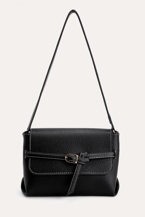 DERİ GÖRÜNÜMLÜ KEMERLİ OMUZ ÇANTASI SİYAH
