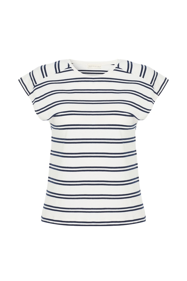 ÇİZGİLİ DÜŞÜK KOL BLUZ LACİVERT