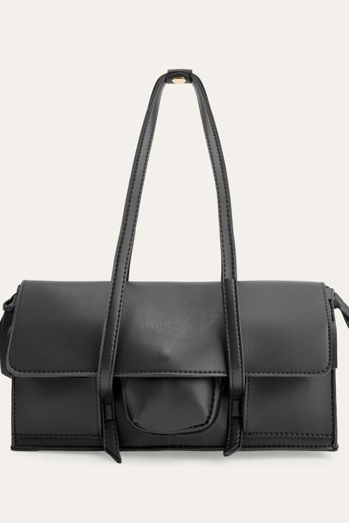 DERİ GÖRÜNÜMKÜ BAGET EL ÇANTASI SİYAH