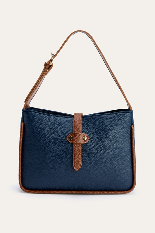DERİ GÖRÜNÜMLÜ TOKA DETAYLI EL ÇANTASI LACİVERT