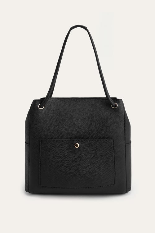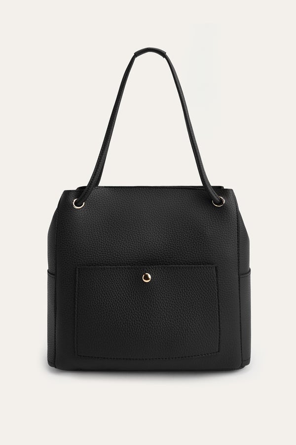 DERİ GÖRÜNÜMLÜ TOTE EL ÇANTASI SİYAH