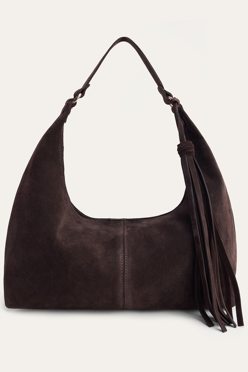 PÜSKÜLLÜ SÜET DERİ EL ÇANTASI KAHVERENGİ