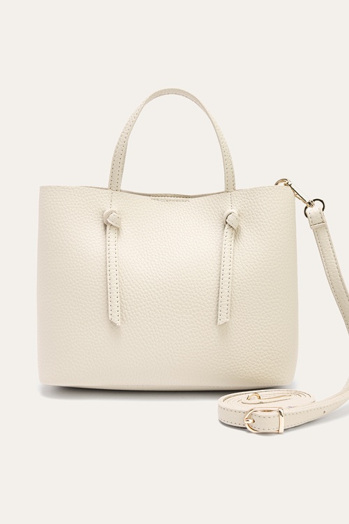 DERİ GÖRÜNÜMLÜ ASKILI EL ÇANTASI EKRU
