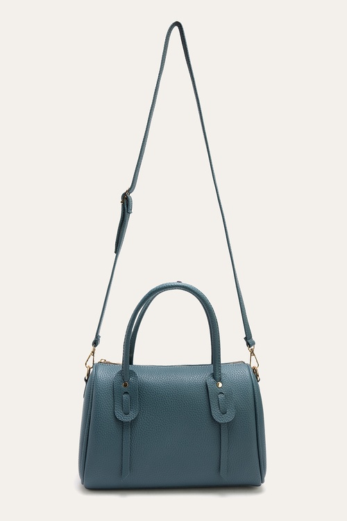 DERİ GÖRÜNÜMLÜ ASKILI EL ÇANTASI GRİ MAVİ