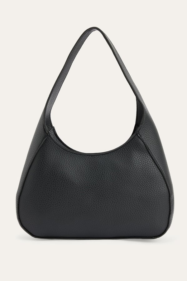 DERİ GÖRÜNÜMLÜ OVAL EL ÇANTASI SİYAH