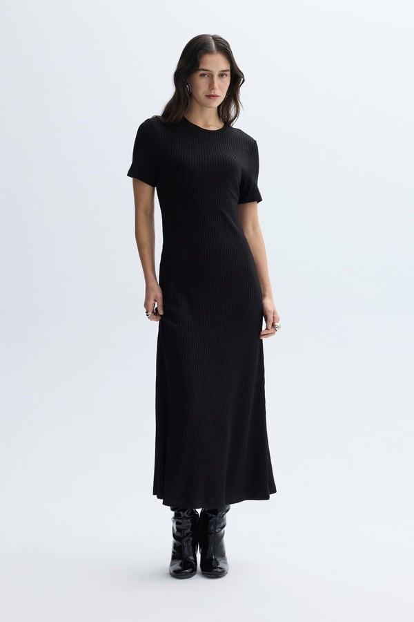 FİTİLLİ A FORM MİDİ ELBİSE SİYAH