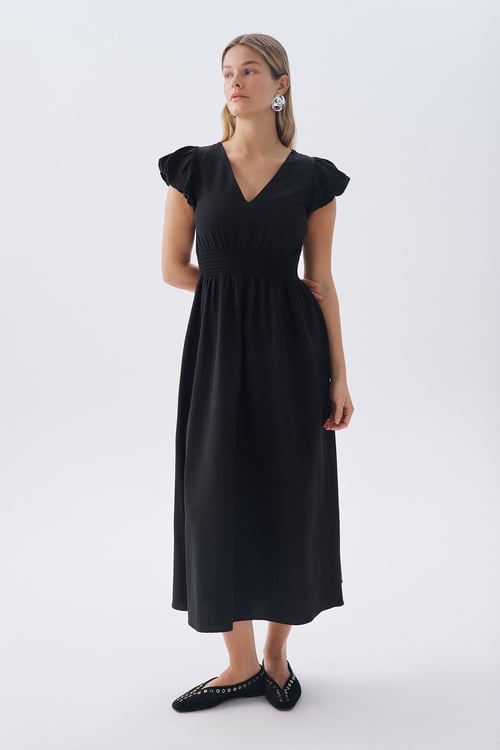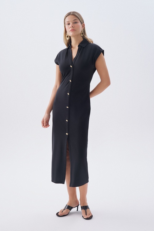 JAKARLI KOLSUZ MİDİ ELBİSE SİYAH
