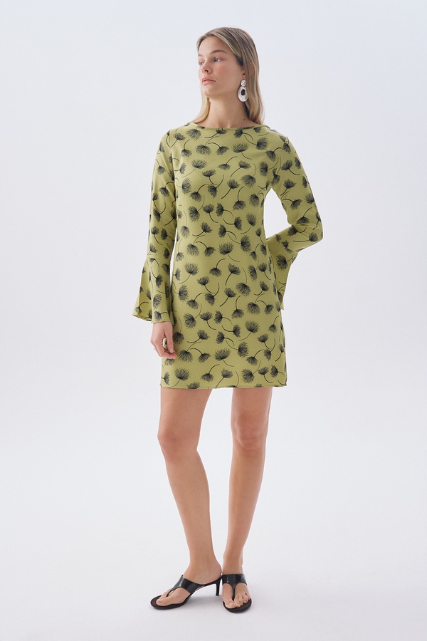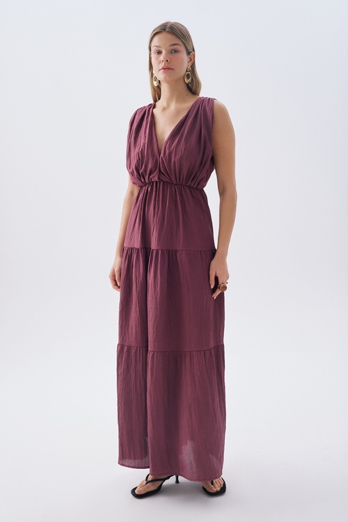 V YAKA KLOŞ MİNİ ELBİSE MÜRDÜM