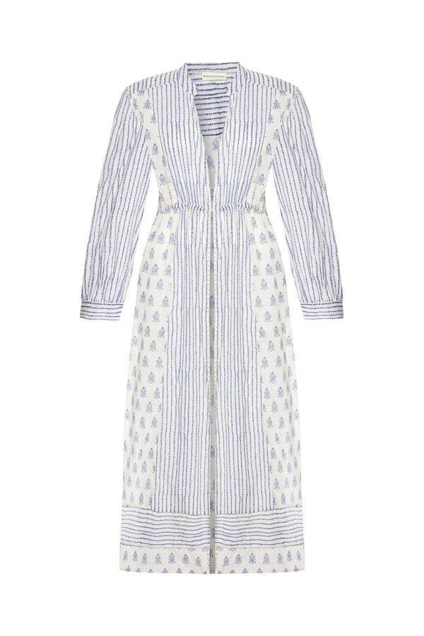 MARİN BASKILI UZUN KİMONO BEYAZ