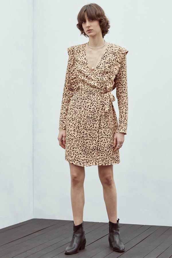 LEOPAR DESENLİ UZUN KOLLU MİNİ KRUVAZE ELBİSE ÇOKLU RENK