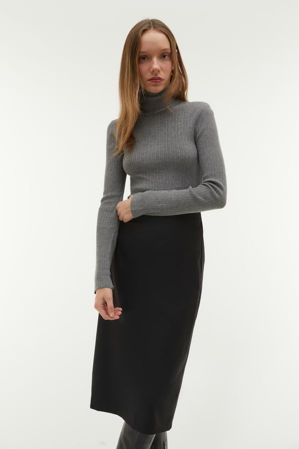 BALIKÇI YAKA FITTED KAZAK GRİ MELANJ