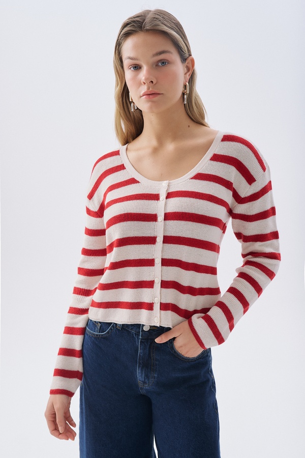 JAKARLI KARELİ BİSİKLET YAKA HIRKA EKRU