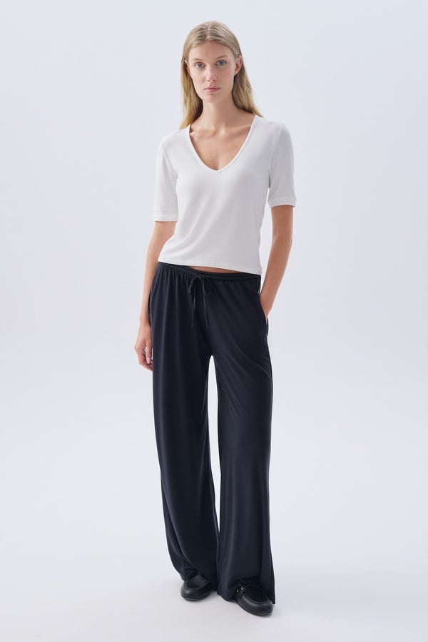 MODAL KARIŞIMLI BELİ BAĞLAMALI WIDE LEG PANTOLON SİYAH