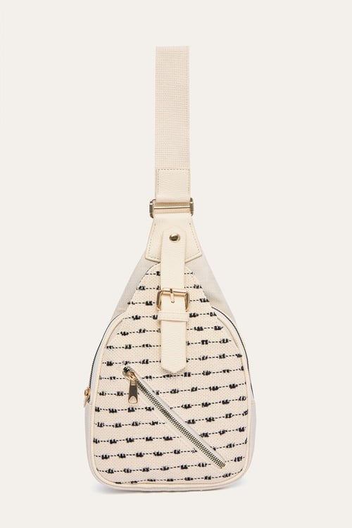 DESENLİ ÇAPRAZ ASKILI BEL ÇANTASI EKRU