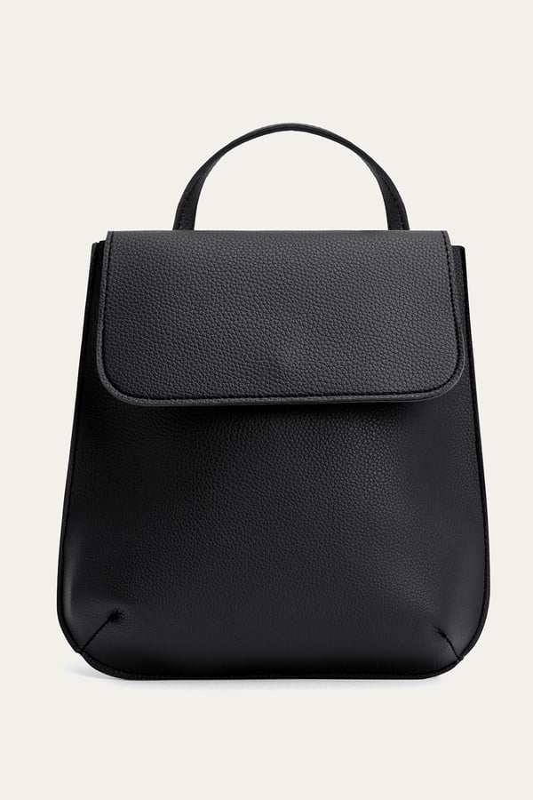 DERİ GÖRÜNÜMLÜ KAPAKLI SIRT ÇANTASI SİYAH