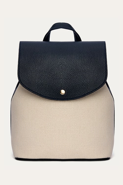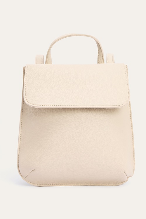 DERİ GÖRÜNÜMLÜ KAPAKLI SIRT ÇANTASI EKRU