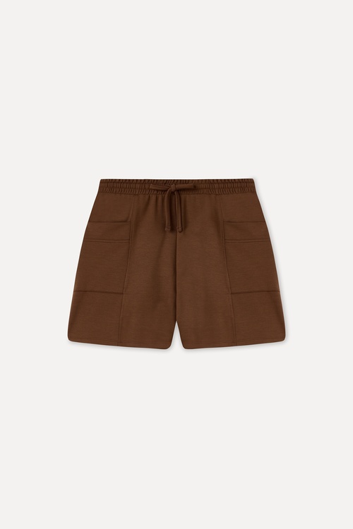 BELİ LASTİKLİ CEPLİ MİNİ ŞORT KAHVERENGİ