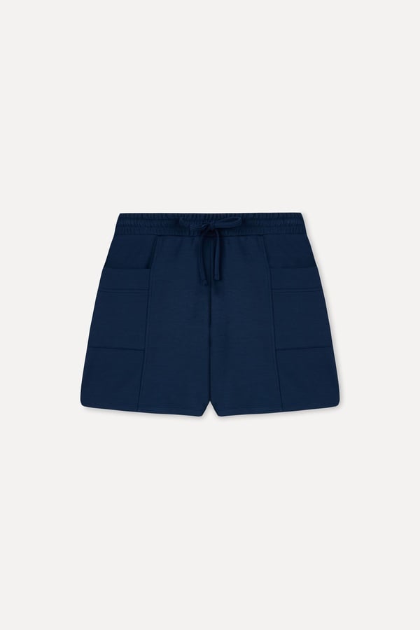 BELİ LASTİKLİ CEPLİ MİNİ ŞORT LACİVERT