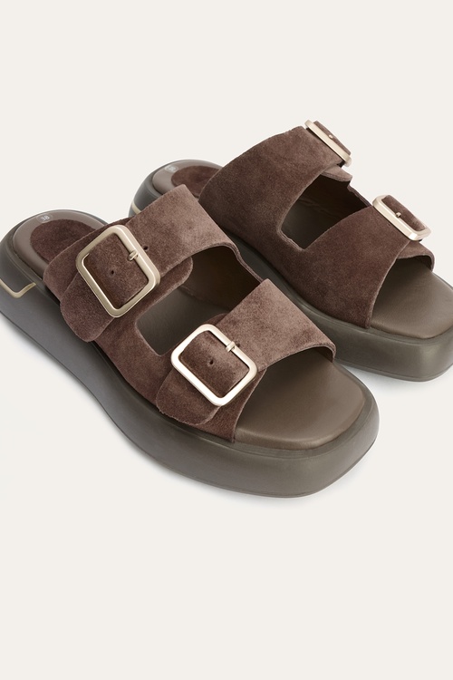 ÖNÜ AÇIK SÜET DERİ SANDALET KAHVERENGİ
