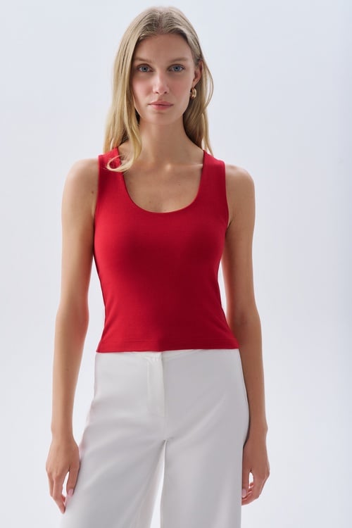 FITTED U YAKA KOLSUZ BLUZ KIRMIZI