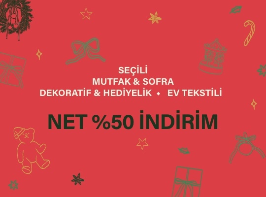 Kampanya, seçili mutfak & sofra ürünlerinde 6 Ocak 2025 - 5 Ocak 2026 saat 10:00'a kadar geçerlidir. Seçili dekoratif & hediyelik ve ev tekstili ürünlerinde 8 Eylül - 5 Ocak 2026 saat 10:00 'a kadar geçerlidir. 1 Alana 1 Hediye kampanyası ile birleşmekte, diğer kampanyalarla birleşmemektedir. Mudo Concept kampanyayı dilediği zaman durdurma ve/veya kampanya koşullarını değiştirme hakkına sahiptir.