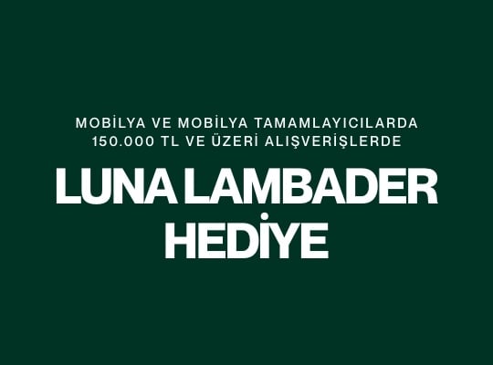 Kampanya 5 Aralık 2025 - 5 Ocak 2026 saat 10:00'a kadar geçerlidir. Mobilya ve mobilya tamamlayıcı ürünlerden tek seferde yapılacak 150.000 TL ve üzeri alışverişlerde Luna Lambader hediyedir. Hediye 200 adet stok ile sınırlıdır. Mudo Concept kampanyayı dilediği zaman durdurma ve/veya kampanya koşullarını değiştirme hakkına sahiptir.