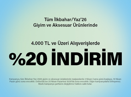 Kampanya 5 Ocak - 27 Nisan 2026 saat 10:00'a kadar geçerlidir. Mudo Concept kampanyayı dilediği zaman durdurma ve/veya kampanya koşullarını değiştirme hakkına sahiptir.