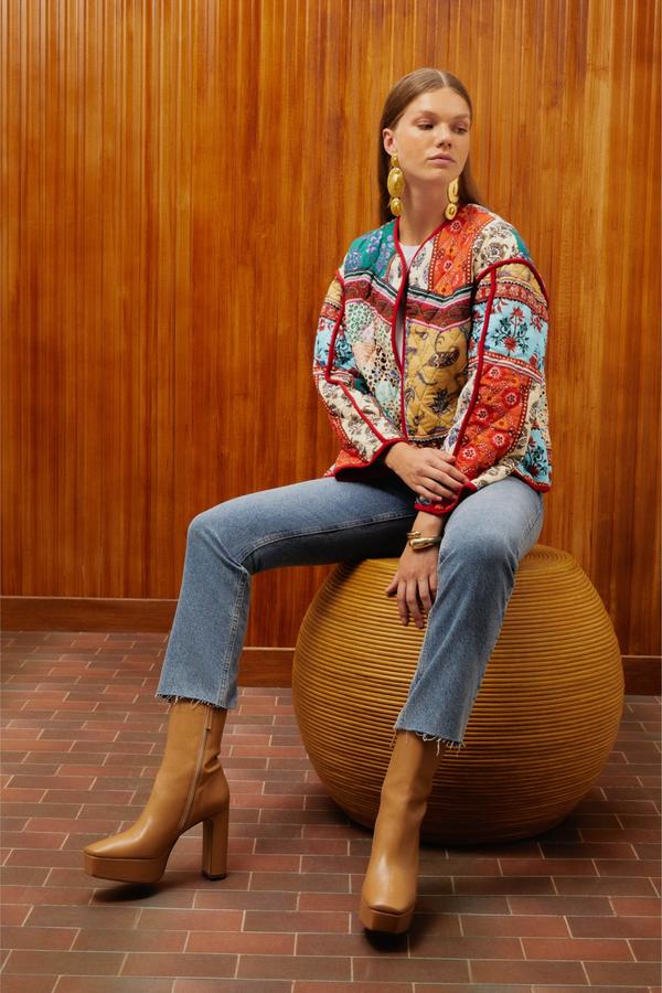 Mudo ceket mont modelleri ile etnik desenler soğuk havalarda modunu yükseltecek! Sonbahar ve kışın temsili kapitone dikişleri üzerine etnik desenleriyle dikkat çeken, yumuşak kesim kısa ceket, şık ve bohem tavrını sürdürecek.