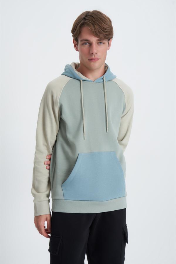 %100 pamuk kumaştan üretilen, içi polarlı yapısıyla içini ısıtacak renk bloklu kapüşonlu sweatshirt soğuk havalarda vazgeçilmezin olacak. Jean pantolonlar, chino pantolonlar ile kombinleyebileceğin içi polarlı kanguru cepli sweatshirt modelini spor şıklık için jogger eşofman altlarıyla tamamlayabilirsin.