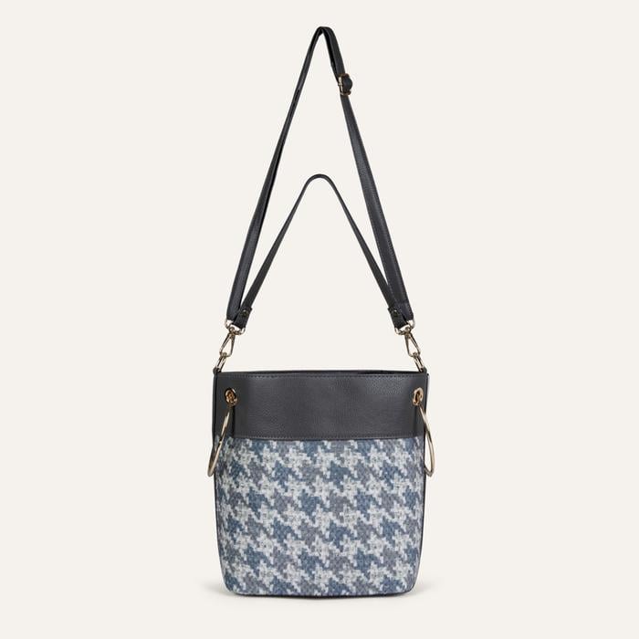 Mudo kadın çanta modelleri ile şık kombinlerini tamamla. Kanvas omuz çantası kazayağı deseni ve halka detayıyla kombinlerine güçlü bir yorum katacak. İçerisinde bez torbası ile şık ve güvenli bir kullanımı sunan, çıkarılabilir askısı sayesinde hem el çantası hem de omuz çantası olarak kullanabilirsin.