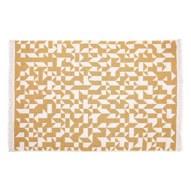 Yaşam alanlarınıza estetik ve doğal bir dokunuş... Geometrik desenleri ve çift taraflı kullanım özelliği ile yaşam alanlarınıza dinamik bir yorum katacak Kelly Halı, %70 geri dönüştürülmüş pamuktan üretilmiştir.