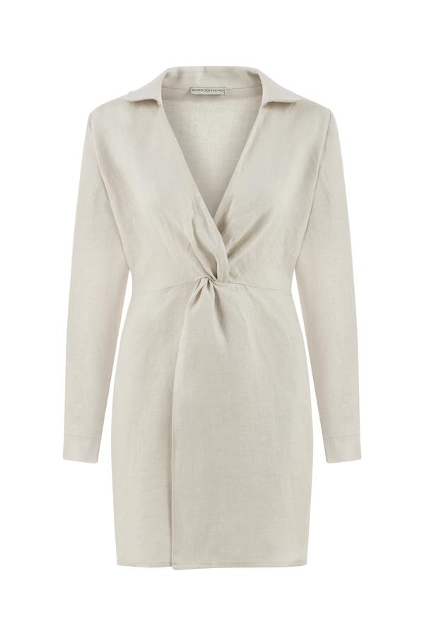 KETEN BÜZGÜLÜ MİNİ GÖMLEK ELBİSE
