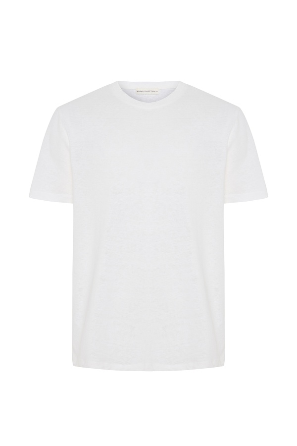 KETEN KARIŞIMLI BİSİKLET YAKA T-SHIRT