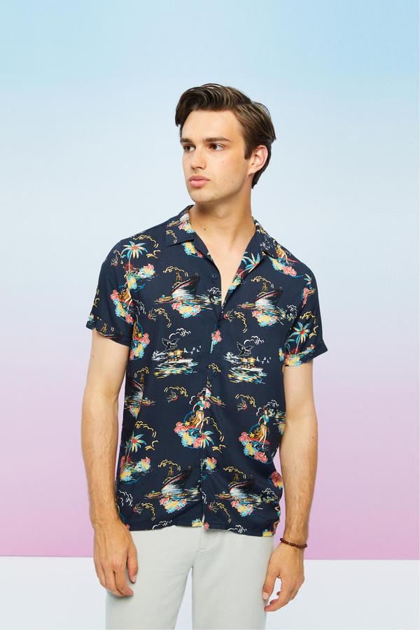 Yazın enerjisini hissedeceğin çiçek desenli gömlek ile chino pantolon, jean pantolonları kombinleyebilirsin. Spor ayakkabılar ve loafer ayakkabılar ile modern görünümü destekleyeceğin viskon kumaştan üretilen kısa kollu gömleği plaj şıklığına da dahil edebilirsin.
