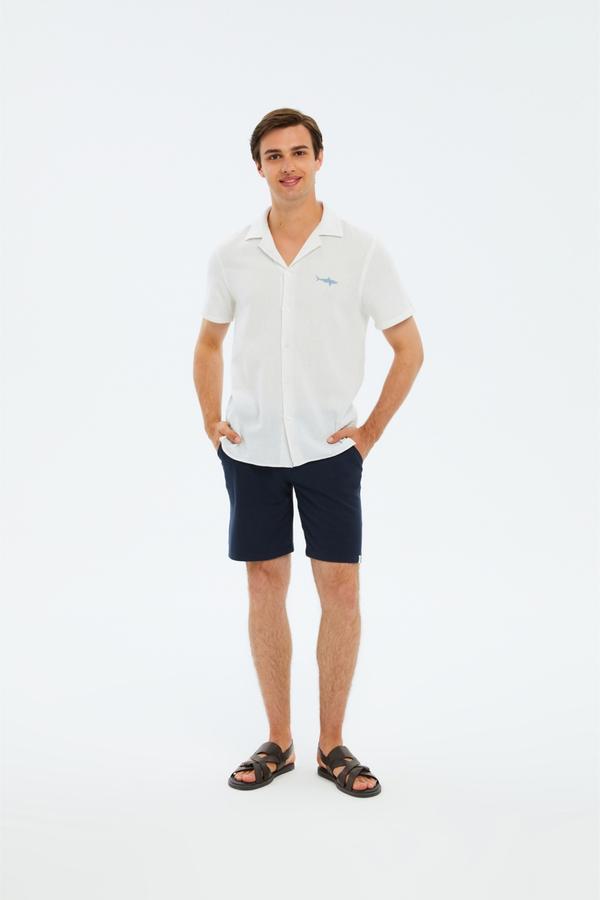 Mudo marin ruhu ile yazın enerjisi tasarıma taşınıyor. Keten karışımlı kumaşıyla konfor sunan baskılı kısa kollu regular fit gömlek modeli ile sahil kenarında, şehrin sokaklarında stilini yansıtabilirsin.