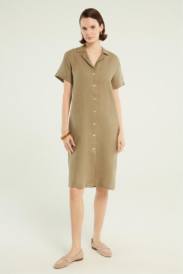 KISA KOLLU KETEN MİDİ GÖMLEK ELBİSE
