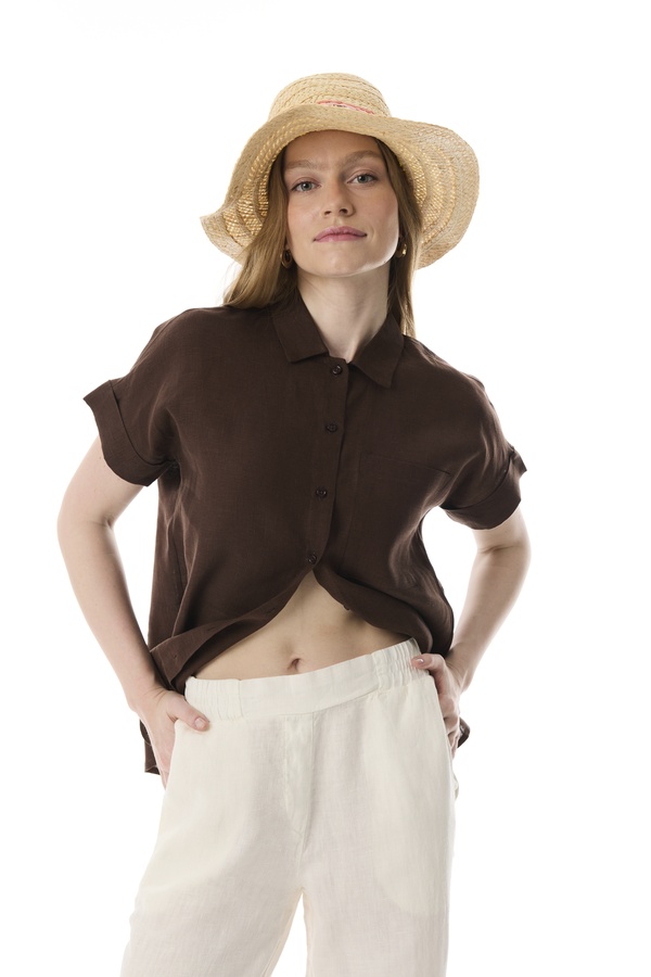 KISA KOLLU TEK CEPLİ KETEN GÖMLEK