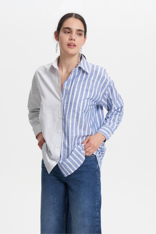 Sezonun öne çıkan rahat kesim gömlek modelleri Mudo'da! Kontrast çizgileriyle öne çıkan rahat kesim uzun kollu gömlek, ofis ve günlük kombinlerinde çabasız şıklığı oluştururken ikonik tasarımıyla yeniden yorumlayacak.